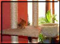 Queequeg macht es sich im Kratzbäumchen gemütlich