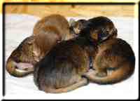 Kissy mit sorrelfarbenen und drei wildfarbenen Kitten