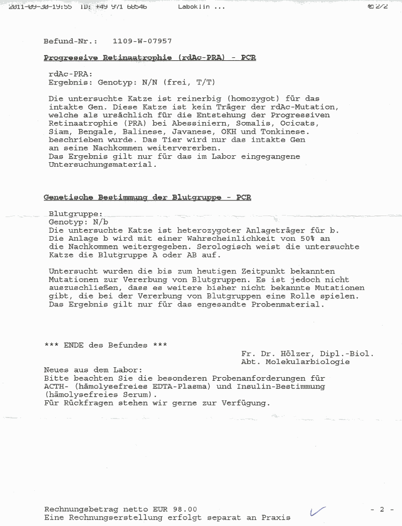 Gentest Blutgruppe: N/b (Blutgruppe A, trägt B)